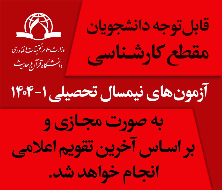برگـزاری آزمون‌های نیمسال 14041 مقطع کارشناسی به صورت مجازی
