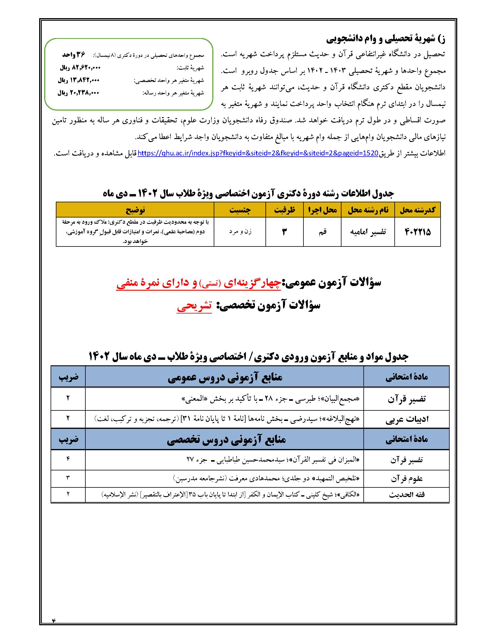 جذب دانشجوی دکتری در رشته «تفسیر امامیه»