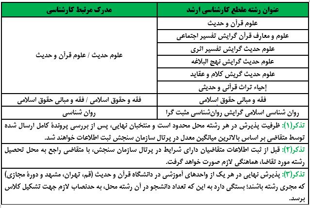 دارندگان شرایط زیر می‌توانند اسکن مدارک خود را حداکثر تا تاریخ ۱۴۰۴/۰۴/۱۵ در سایت دانشگاه قرآن و حدیث ثبت نمایند.