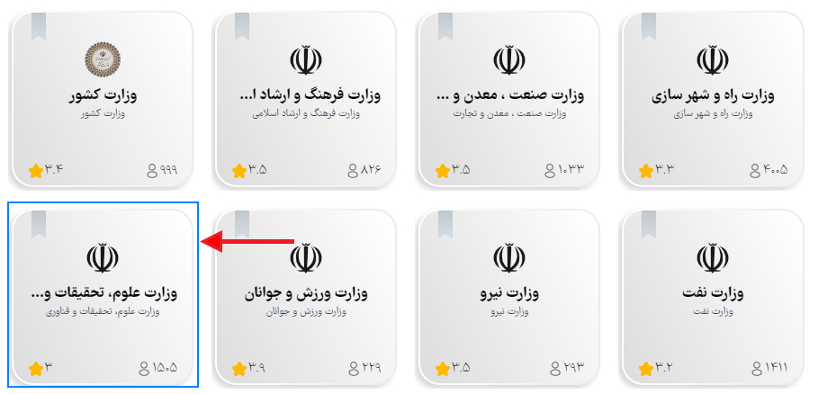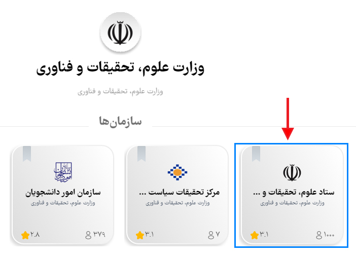 5. در صفحهای که نمایش داده میشود «وزارت علوم، تحقیقات و فناوری» را انتخاب کنید.