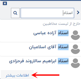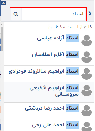 3. در قسمت جستجو، نام استاد یا آموزشیار مورد نظر را وارد کرده و آیکن جستجو که شبیه ذره بین است را کلیک کنید. (تصویر 17)