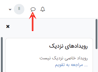 1. بعد از ورود به سامانه دروس الکترونیکی در صفحه خانگی، آیکن پیام از قسمت سمت راست نام خود را کلیک نمایید. (تصویر 20)