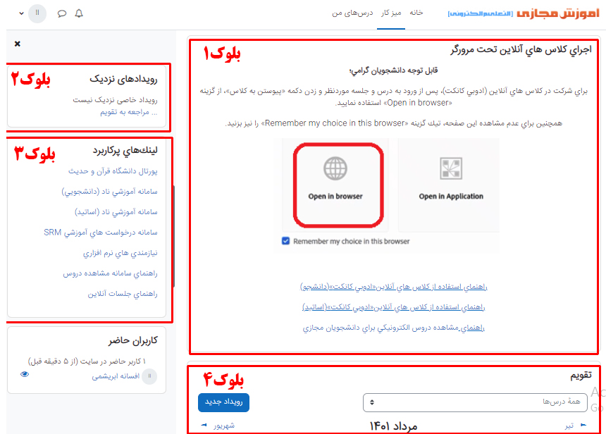 بلوک 1 اطلاعیهها: در این بلوکها مطالبی که نیاز به اطلاعرسانی به دانشجویان دارد، قرار میگیرد که لازم است حتما مطالعه گردد.