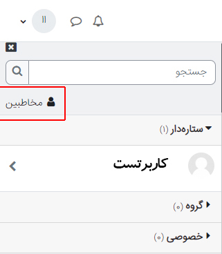 1. برای مشاهده نام استاد یا آموزشیار جهت ارسال پیام، آیکن پیام کنار نام خود در سمت چپ بالای صفحه را کلیک نمایید. (تصویر 15)