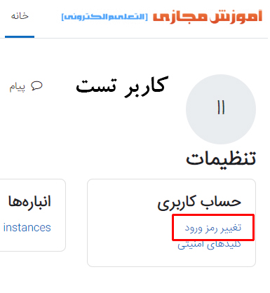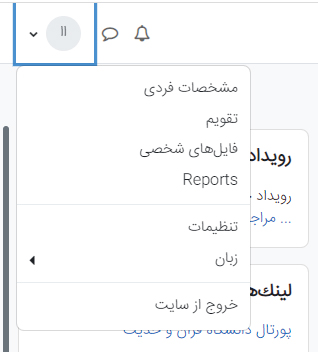 1. بعد از ورود به سامانه دروس الکترونیکی، از بالای صفحه خانگی سمت چپ بر روی نام خود و سپس گزینه تنظیمات کلیک نمایید. (تصویر 22)