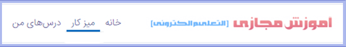 توجه فرمایید در صورتی که درحال مشاهده محتوای جلسه درس مورد نظر خود هستید برای دسترسی سریع به لیست دروس می توانید بر روی لوگوی «آموزش مجازی» در سمت راست بالای صفحه کلیک نمایید، و یا از منوی بالای صفحه «گزینه میزکار» را کلیک کنید تا به صفحه اول بازگردید.(تصویر 13)