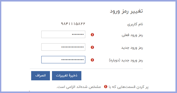 3. در صفحه بعد فیلد های مورد نظر را پر کرده و بر روی دکمه "ذخیره تغییرات" کلیک کنید تا در نهایت رمز ورود شما تغییر یابد. (تصویر 24)