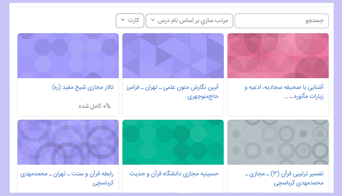 در صفحه خانگی (منوی درسهای من) در بلوک «نمای کلی دروس» ذیل هر درس، درصدی را مربوط به مشاهدهی انجام شدهی شما نشان میدهد. (تصویر 12)