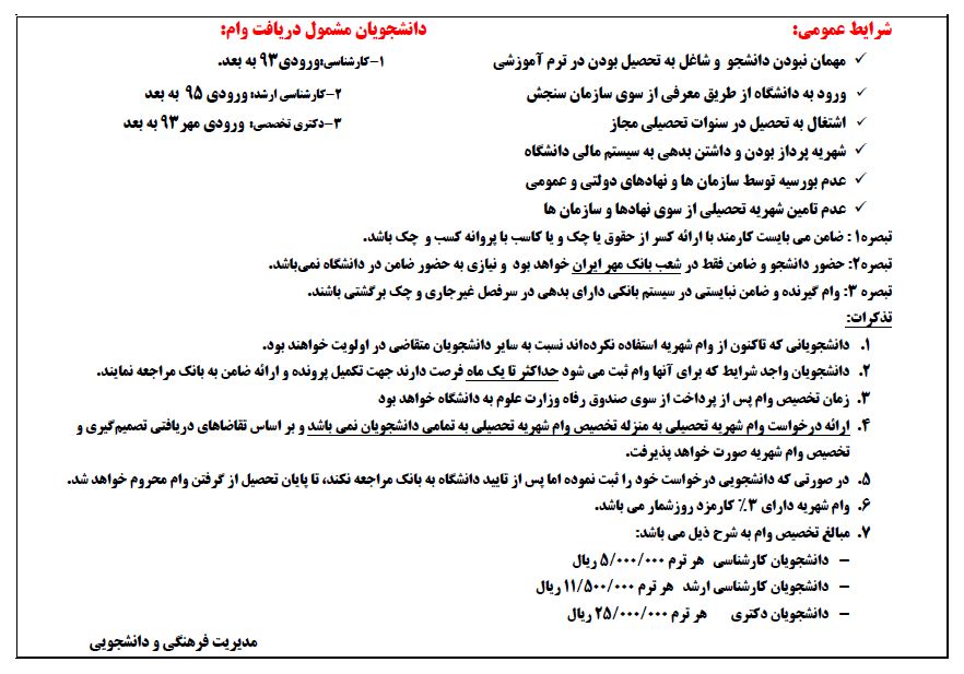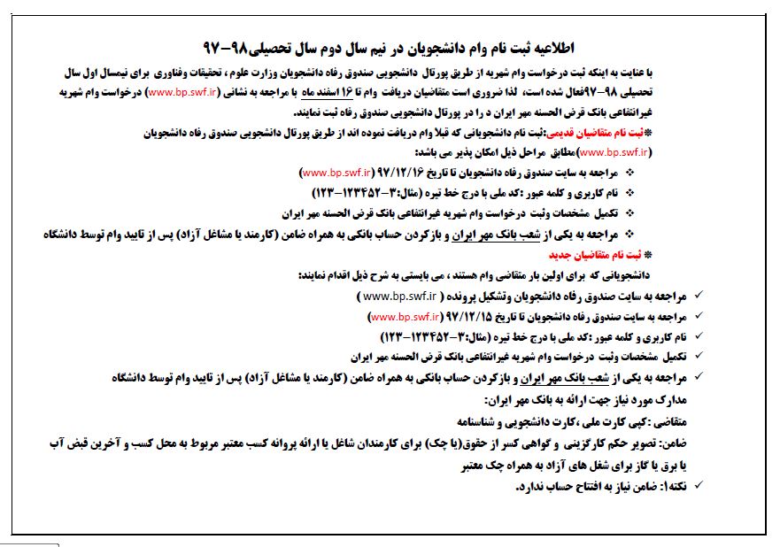 اطلاعیه وام شهریه ترم دوم سال تحصیلی 98-97