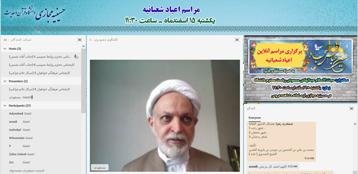 به گزارش روابط عمومی دانشگاه قرآن و حدیث، به مناسبت اعیاد شعبانیه مراسم آنلاین با سخنرانی حجت الاسلام عبدالهادی مسعودی ریاست دانشگاه قرآن و حدیث در حسینیه مجازی دانشگاه برگزار شد.