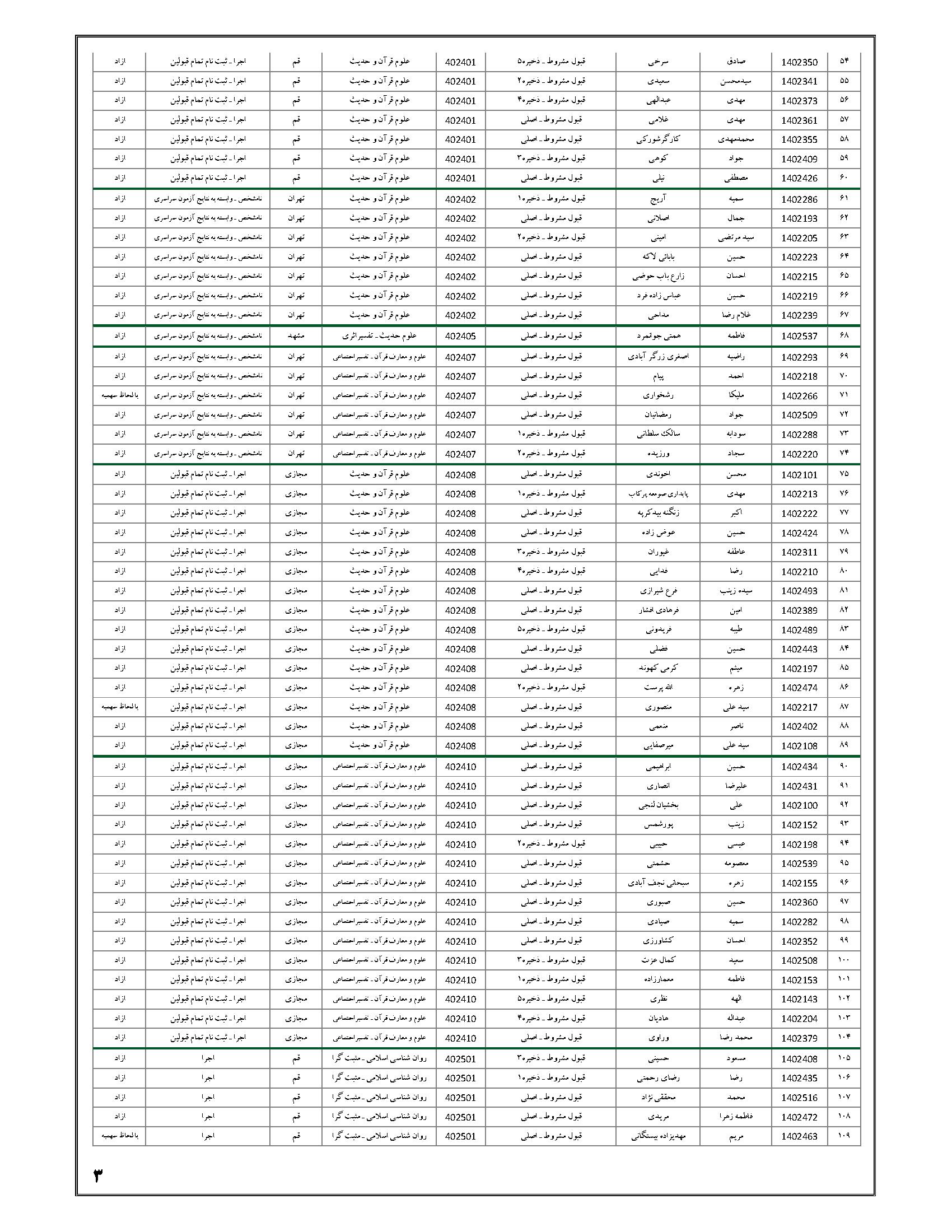 در این اطلاعیه اسامی قبول شدگان در آزمون اختصاصی کارشناسی ارشد ویژه طلاب در سال تحصیلی 1403-1402 اعلام شده است.