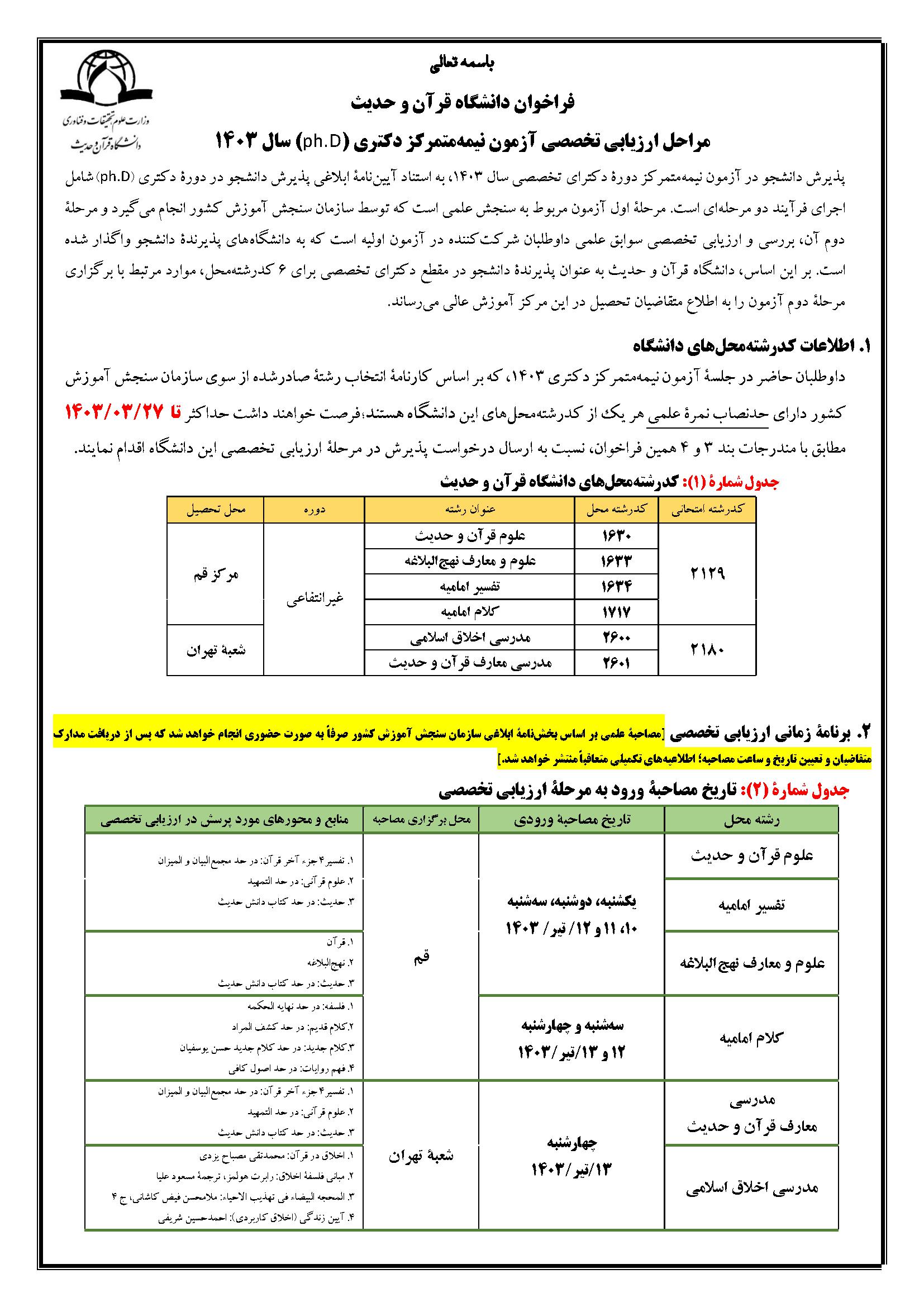 دانلود اطلاعیه مصاحبه دکتری 1403