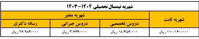 * شهریه برای سال تحصیلی ۱۴۰۵ ـ ۱۴۰۴ بین۲۰ تا۳۰ درصد نسبت به سال تحصیلی ۱۴۰۴-۱۴۰۳ افزایش خواهد داشت.