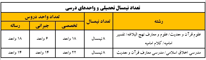 ج) دانشگاه قرآن و حدیث: ۱ـ علوم حدیث با گرایش‌­های اخلاق، کلام و عقاید، تفسیراثری و نهج‌­البلاغه  ۲ـ علوم قرآن و حدیث ۳ـ تفسیر روایی ۴ـ علوم و معارف نهج­‌البلاغه ۵ ـ روان­شناسی اسلامی گرایش روان­شناسی مثبت­گرا ۶ ـ معارف قرآن ۷ ـ فقه و مبانی حقوق اسلامی