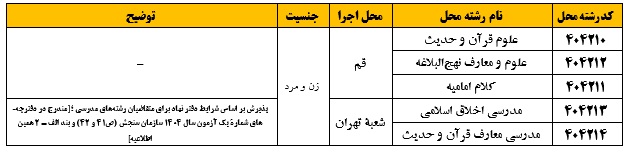 جدول اطلاعات رشته­‌ها و گرایش‌­های دورۀ دکتری آزمون اختصاصی ویژۀ طلاب سال ۱۴۰۴