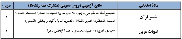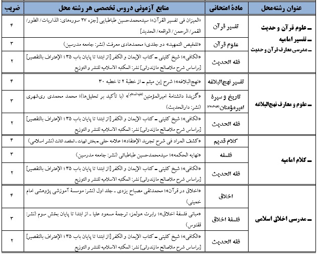 جدول مواد و منابع آزمون ورودی دکتری/ اختصاصی ویژۀ طلاب ـ سال 1404