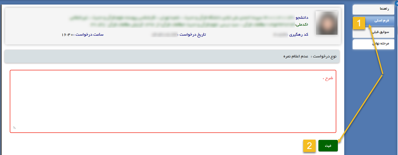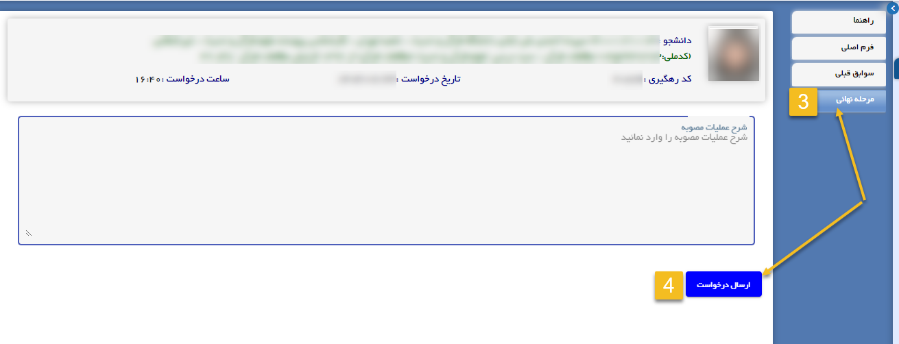 تذکر: دقت شود حتما دکمه ارسال درخواست در بخش مرحله نهایی مطابق راهنمای تصویری زده شود.