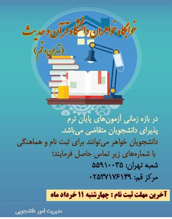 دانشگاه قرآن و حدیث در شعبه های قم و تهران صرفاً برای دانشجویان خواهر دارای خوابگاه است که در صورت رعایت حد نصاب و طبق قوانین مندرج در آئین نامه، نسبت به جذب دانشجو اقدام می نماید.
