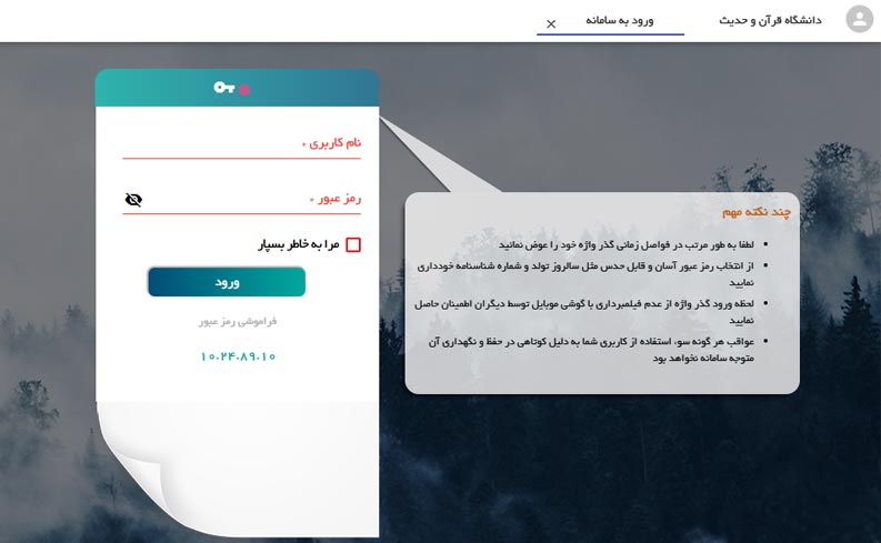 1. برای شرکت در جلسات آنلاین ابتدا باید وارد سامانه مشاهده دروس شوید جهت ورود در صفحه اصلی سایت دانشگاه قرآن و حدیث بر روی «سامانه دروس الکترونیکی (LMS)» کلیک نمایید. (تصویر 1)